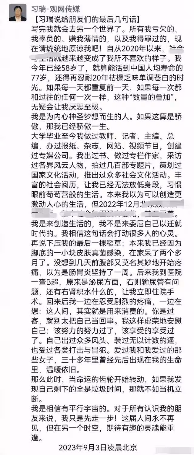 據悉,習瑞從事多年傳媒工作,做過總編、專欄作家,採訪過各界風雲人物,還策劃、拍攝過各種專題片。