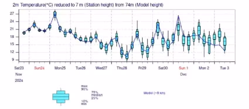此外,預估周六清晨第二波冷氣團緊接南下接力,寒冷天氣有機會延續到12月初,溫度偏低的情況會持續一段時間,還需繼續觀察。