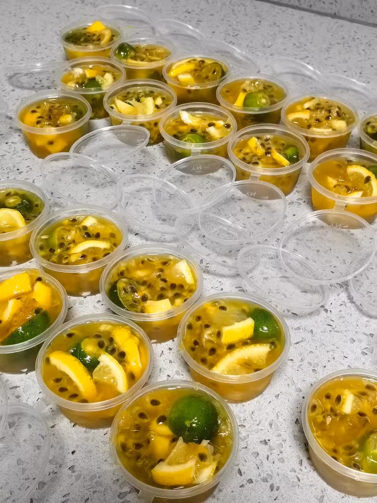 1.準備百香果15個左右、檸檬3個左右、小青檸20個左右,黃冰糖400g、蜂蜜250g左右,再買圖片中的分裝盒