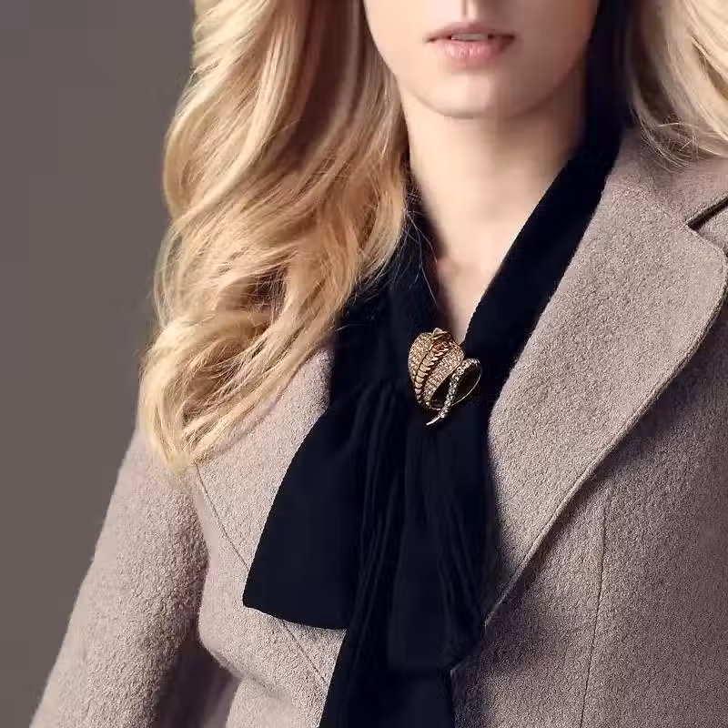 搭配圍巾的時候只需要將胸針點睛單調的領口之處;