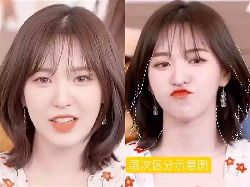 斜劉海的設計還有助於平衡臉部比例,使臉部線條看起來更柔和。