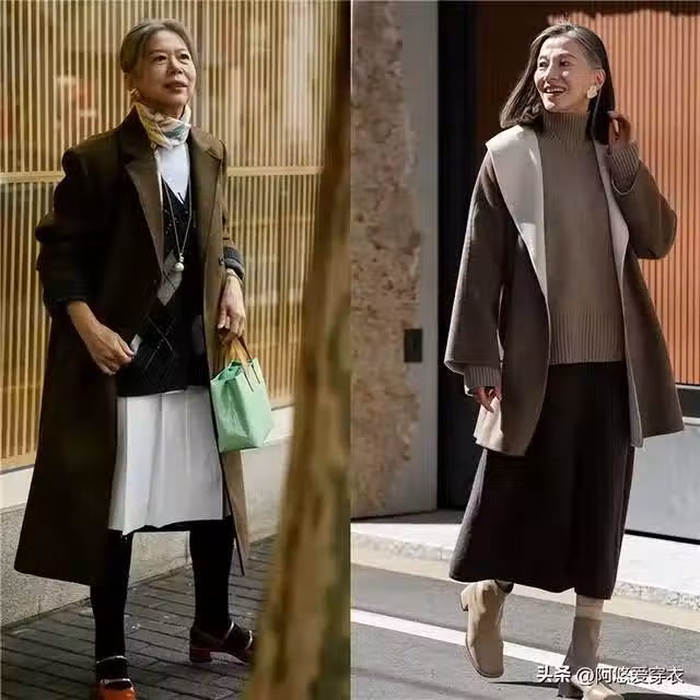 中老年女人穿裙子時,儘量不要配大衣、羽絨服,換成這幾種更洋氣