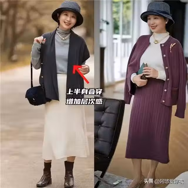中老年女人穿裙子時,儘量不要配大衣、羽絨服,換成這幾種更洋氣