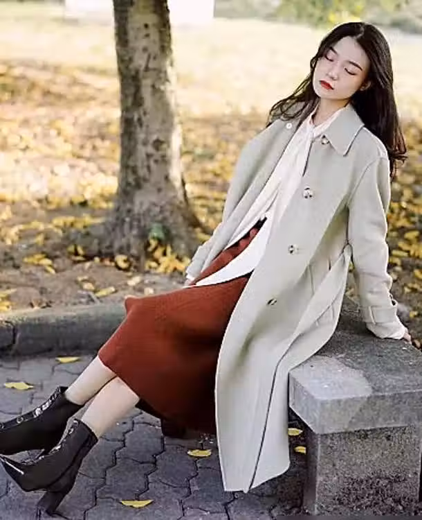 長大衣材質挺括硬朗,比如:可以選擇羊毛呢的材質。這種材質的質感會帶有一種厚重感。