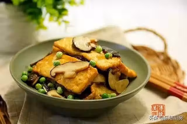 第一步:準備食材。滷水豆腐1塊、香菇幾個、青豆適量、蒜適量。