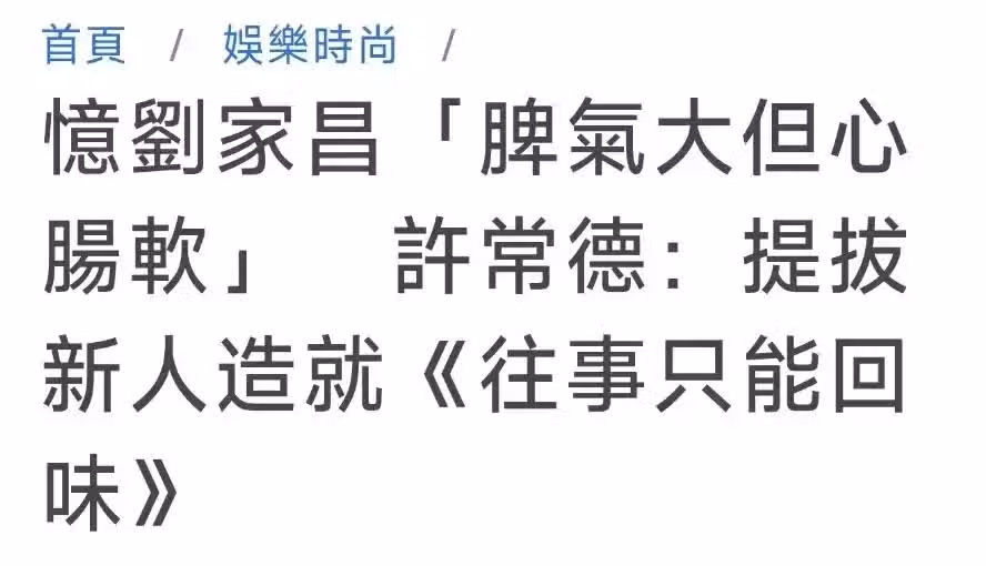 據台媒報道,同樣是音樂人的許常德在得知劉家昌去世後一時間很是震驚,隨後他又表示,劉家昌雖然生前脾氣很大,但是心腸軟。