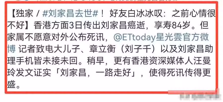 當時的劉家昌雖是滿頭黑髮,但他整個人的面色蠟黃,眼神呆滯,身體也暴瘦到了脫相,看起來十分的憔悴不已。