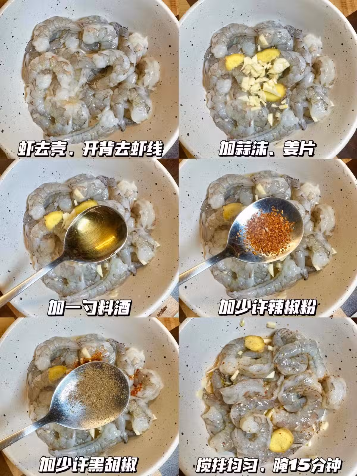 2⃣️加蒜沫➕薑片➕一勺料酒➕少許辣椒粉➕少許黑胡椒,攪拌均勻,腌制15分鐘