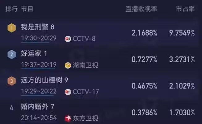 沒想到12月剛開始,湖南衛視又選擇了一部家庭劇接檔《小巷人家》。就是由張小斐、佟大為、陳小藝等人主演的《好運家》。更沒想到的是首集收視率就達到了0.77,還超過了《小巷人家》,全國收視率僅次於央視劇《我是刑警》,穩坐衛視收視率第1的位置。