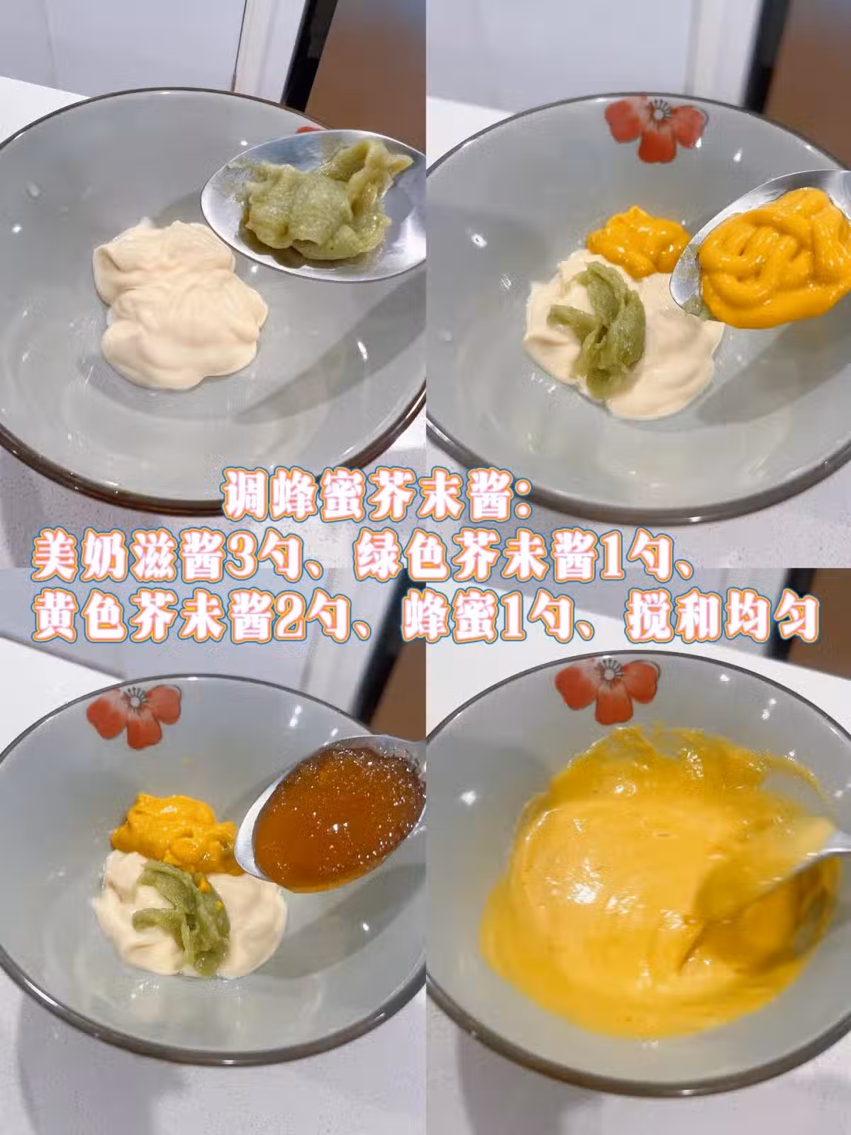 黃色芥未醬2勺、蜂蜜1勺、攪和均勻