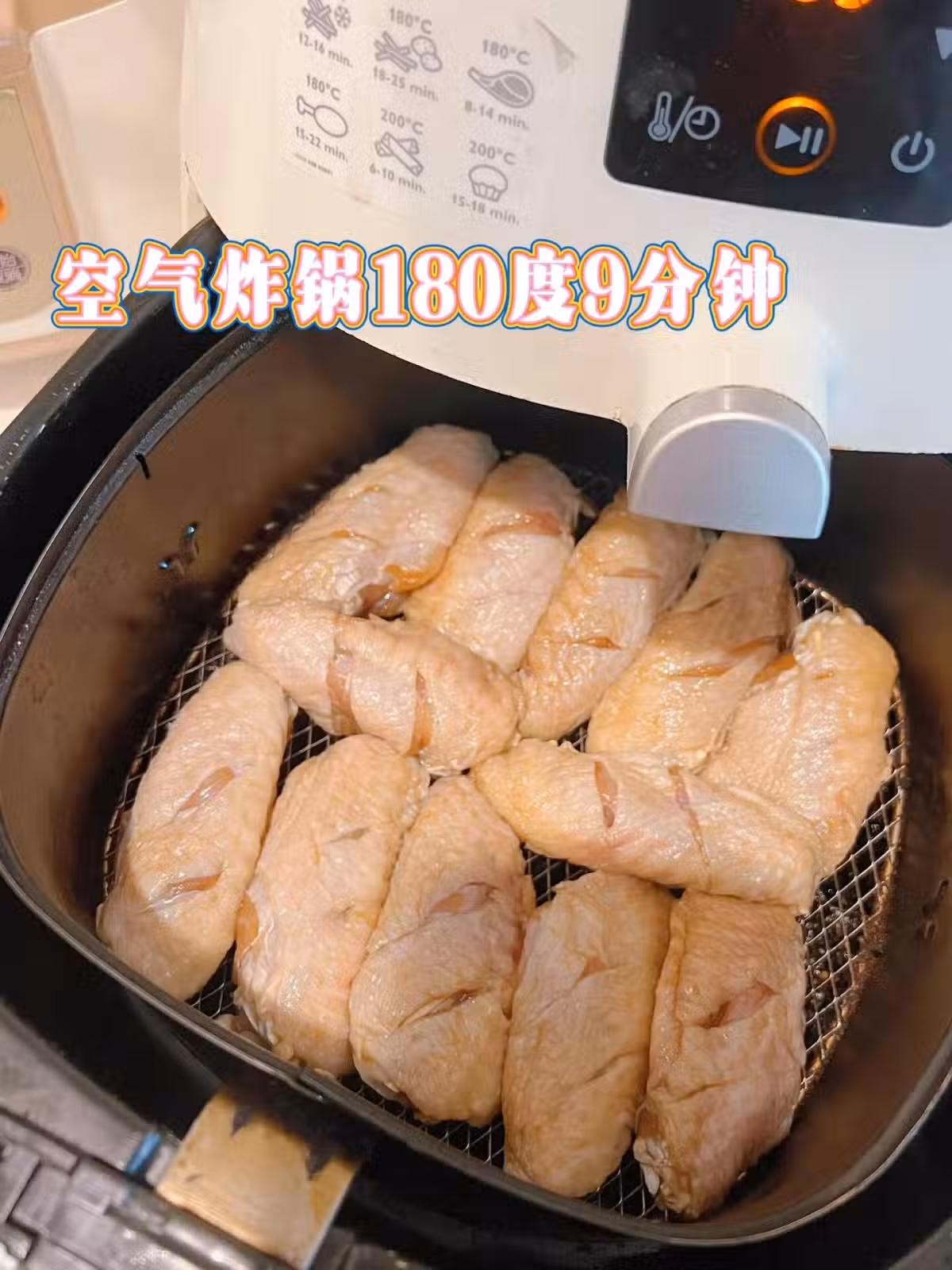 3)腌好的翅中放入空氣炸鍋,180度9分鐘