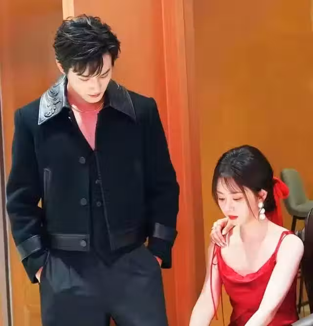 譚松韻為新劇掃樓,一襲紅裙美得太精緻~和鄭業成同框看著很搭!