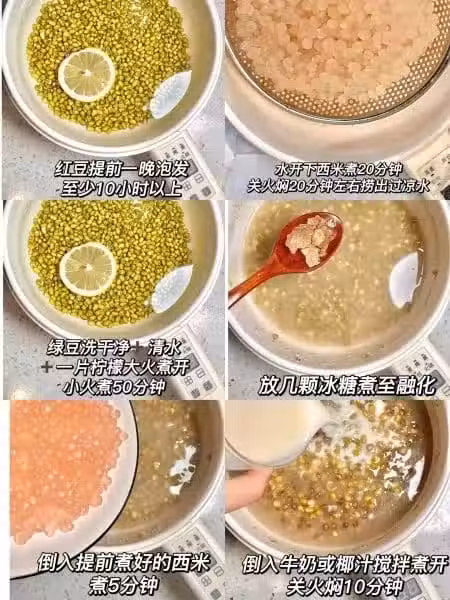 1⃣️綠豆提前泡一晚、泡的越久煮的越軟爛