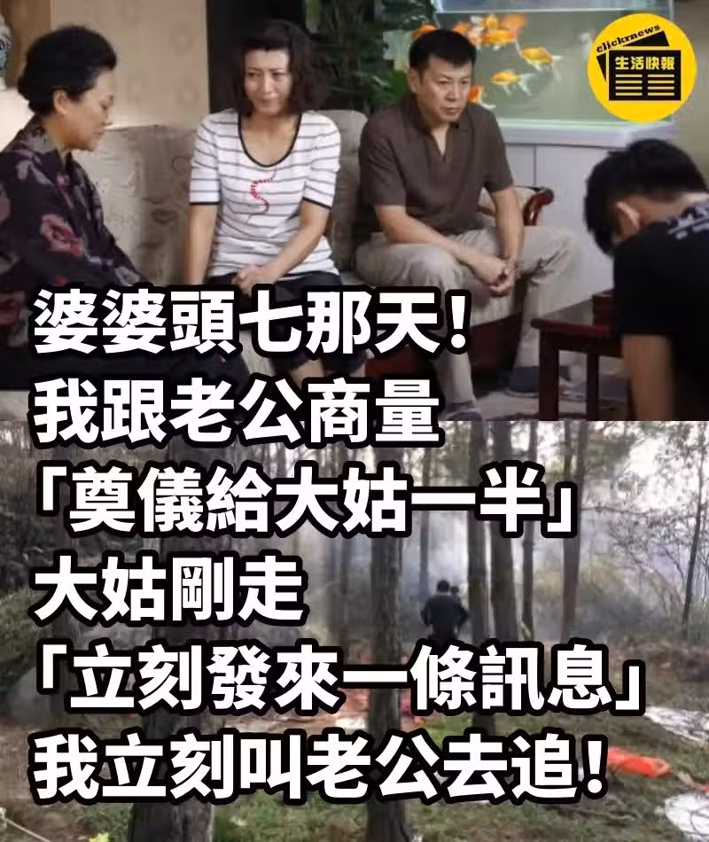 婆婆頭七那天!我跟老公商量「奠儀給大姑一半」 大姑剛走「立刻發來一條訊息」我立刻叫老公去追