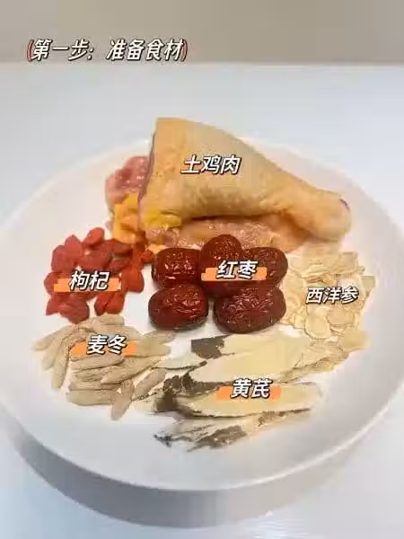 食材:土雞/烏雞、黃芪、西洋參、麥冬、枸杞、紅棗