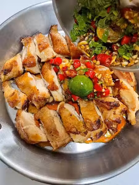 新鮮嫩嫩的小雞腿中摻雜著青檸的清香,吃了第一塊還想吃無數塊,吃不膩的那種。