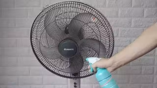 在家製作好電風扇清潔劑之後,下面再教大家如何不用拆電風扇就能清洗電風扇的方法。先往電風扇的網罩部分噴上一些自製的清潔劑,靜置一分鐘。再用百潔布去擦一擦電風扇的網罩。