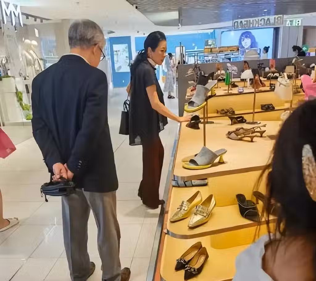 朱玲玲喜歡逛商場, 他則全程陪同老婆,將恩愛舉動落實到底。
