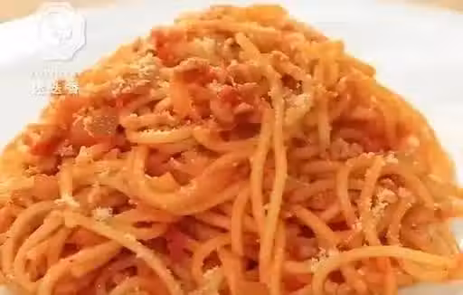 5、把蒜末、番茄丁和肉末都加進去,然後加上番茄醬,翻炒均勻做成意面的醬料;