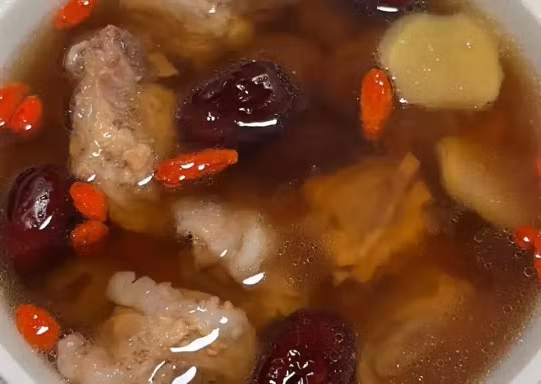 這道湯的主要成分包括排骨、紅參、桂圓、紅棗、薑片和枸杞。紅參的清香與紅棗和桂圓的甜味相結合,使湯味道鮮美,營養更加豐富。桂圓和紅棗的加入也增加了湯的甜味和營養價值。
