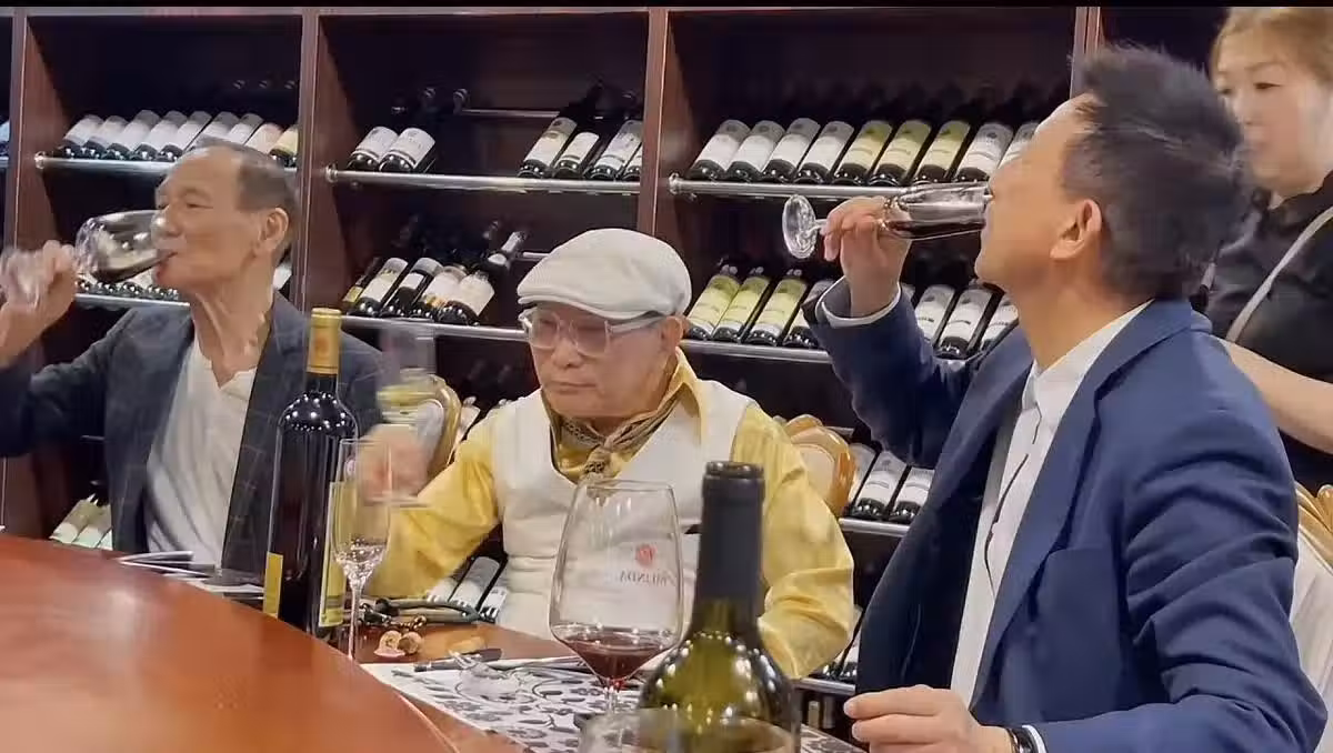 他一邊喝紅酒,一邊抬頭的時候,脖子青筋爆出,看著好老,像90多歲的老大爺。