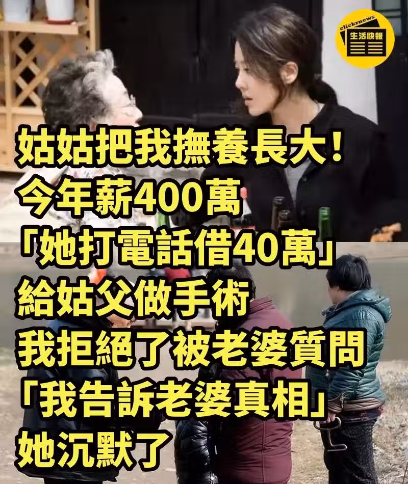 姑姑把我撫養長大 !今年薪400萬「她打電話借40萬」給姑父做手術 我拒絕了被老婆質問「我告訴老婆真相」她沉默了