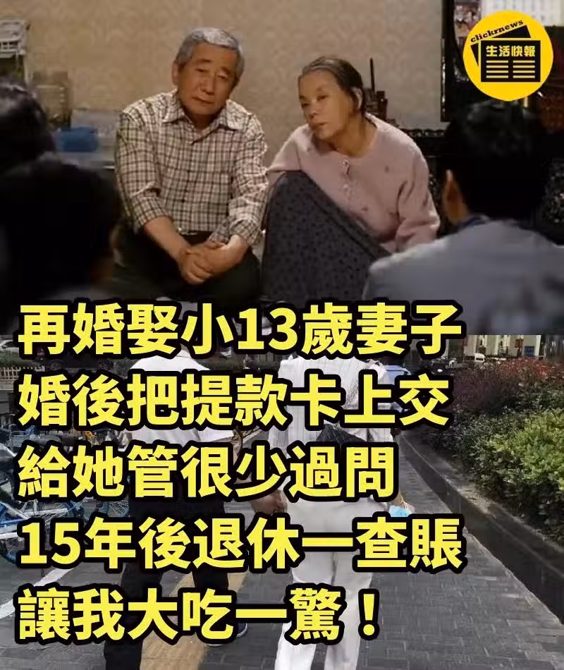 再婚娶小13歲妻子 ,婚後把提款卡上交給她管很少過問,15年後退休一查帳,讓我大吃一驚 !