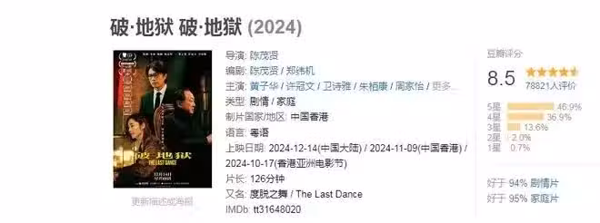 毫不誇張地說:《破·地獄》實現了口碑與票房雙豐收,是一部徹頭徹尾的,讓人叫好又叫座的佳作。