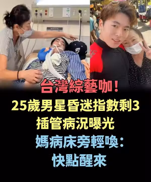 台灣綜藝咖!25歲男星「昏迷指數剩3」插管病況曝光,媽病床旁輕喚:快點醒來