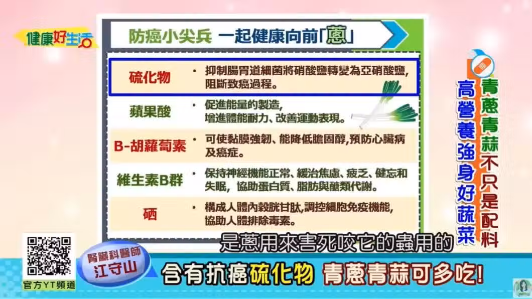 值得注意的是,在大陸啟東地方的研究,也指出硒含量夠的人比較不容易得到癌症,綜合上述營養成分,蔥具有降低膽固醇、改善疲勞、提升免疫力、抗氧化、延緩衰老、預防便秘等正面影響,好處多到爆,在料理上也好發揮,對民眾來說真的一舉數得!