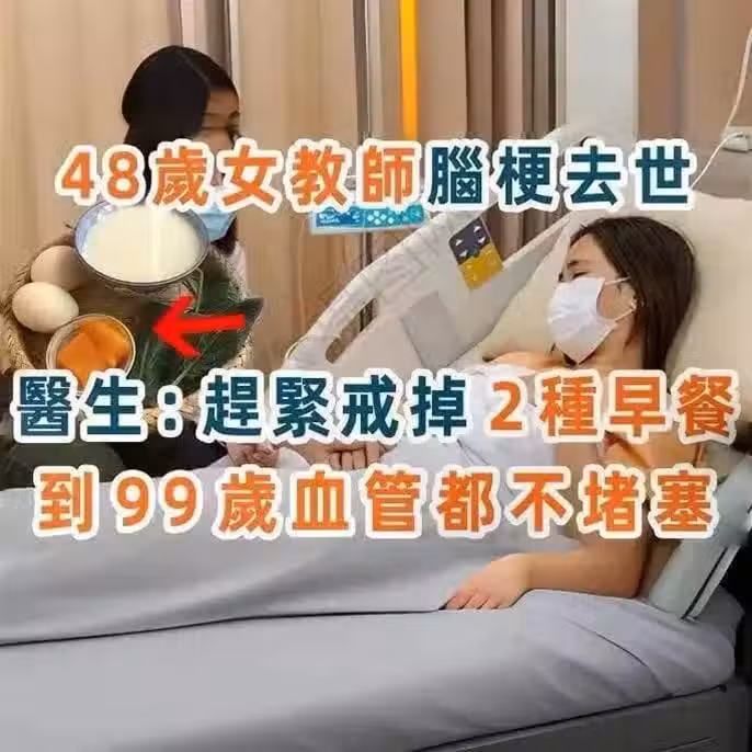 48歲女教師腦梗離世,醫生:天天吃2種早餐,血管很容易堵塞!