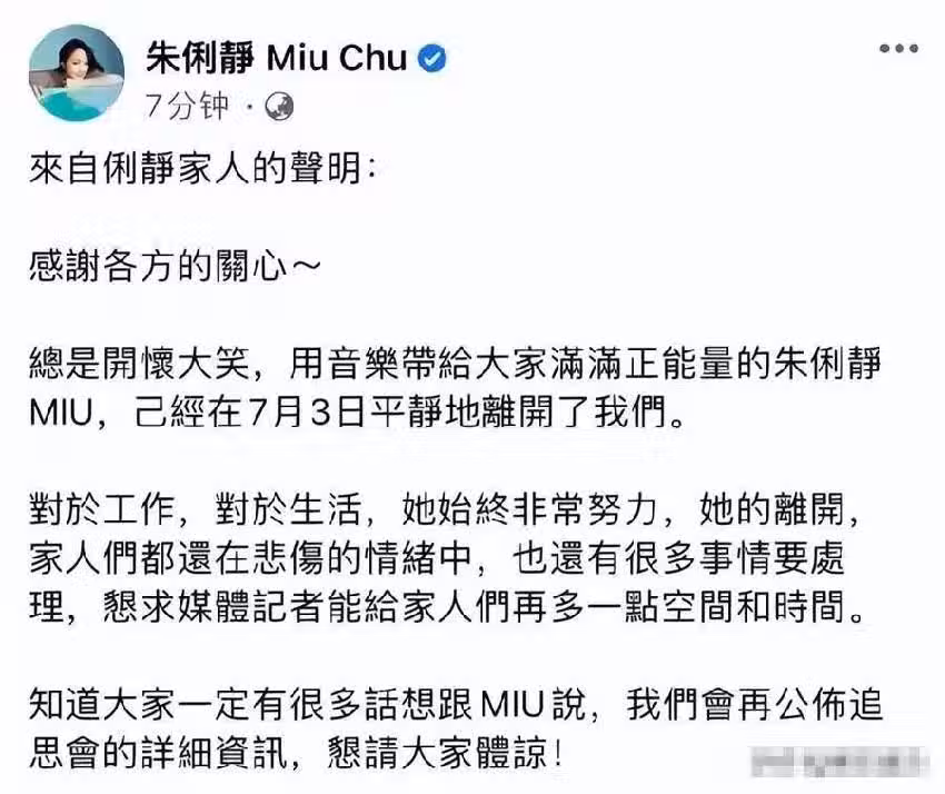 實際上,乳腺癌無時無刻地在侵蝕著朱俐靜的身體,直到2022年的7月4日,這位受盡苦痛的靈魂,也終於飛向了天堂。