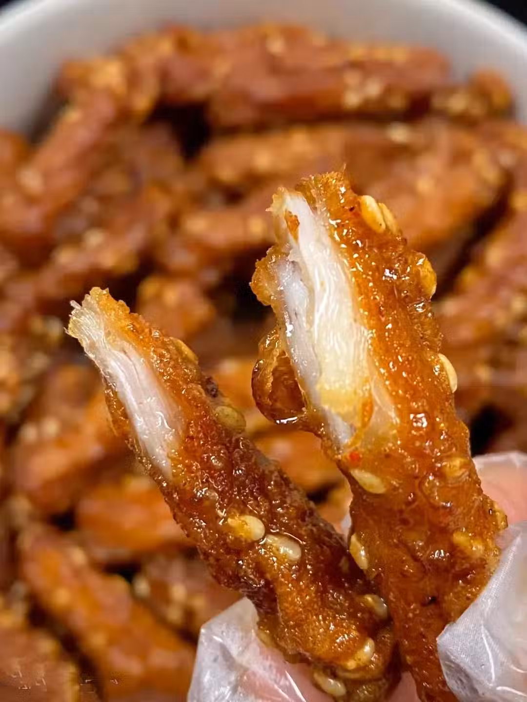 等它稍微涼了點,我就迫不及待地抓了一塊兒放進嘴裡。哎喲喂,那個味啊,外酥里嫩,香辣酥脆,簡直就像是在嘴裡放了個小鞭炮,炸得我滿嘴都是香味!我邊吃邊夸二姨媽手藝好,二姨媽聽了那叫一個開心,一個勁地叫我多吃點。還特地拿了包配料給我,說回家用這個就能做出一模一樣的芝麻香酥肉。你說我這運氣,蹭吃還蹭配料,簡直是走了狗屎運了!