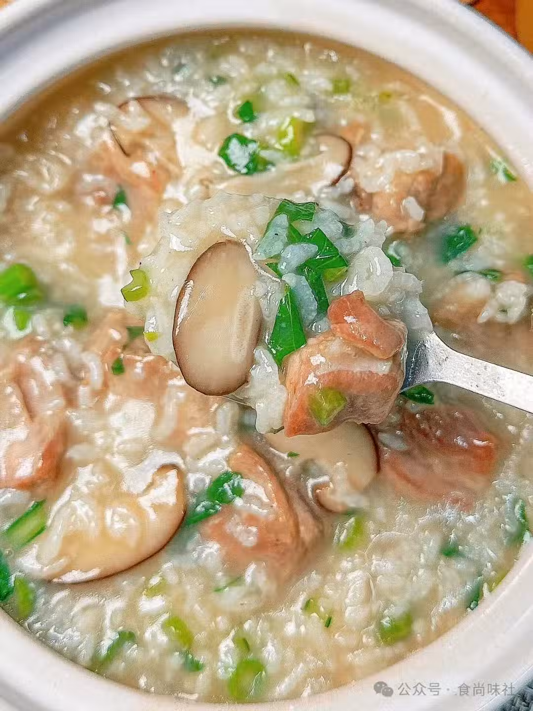 香菇排骨粥小貼士: ♥️排骨需提前浸泡去除血水,這樣煮出的粥口感更清爽。