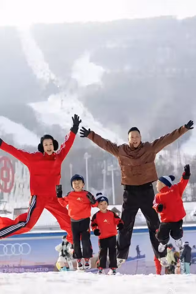 TVB視後一家五口內地度假!現身吉林雪場,兩個兒子共用一張臉