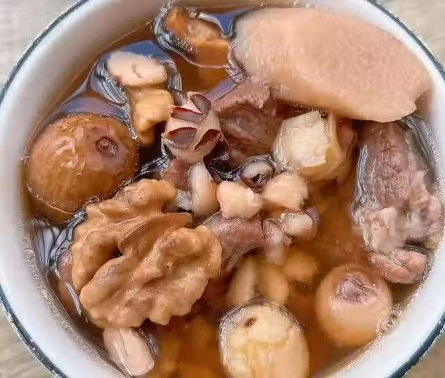 食材:核桃、黑豆、蓮子、淮山、芡實、蜜棗、豬骨