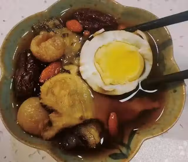 2、把雞蛋放回砂鍋里,再加點老紅糖,繼續燉10分鐘。最後,別忘了撒上枸杞,稍微攪和攪和,然後就可以關火啦。要是你想吃嫩嫩的雞蛋,也可以直接把生雞蛋打進砂鍋里,像煮荷包蛋那樣,煮個15分鐘就差不多了。記得哦,紅糖一定要用老紅糖。