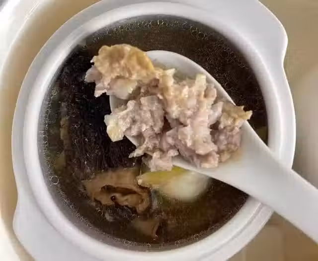 4、放入燉盅燉40分鐘加鹽調味即可。湯香撲鼻!湯水有羊肚菌的獨特香味,瘦肉和山藥結合在一起也變得非常鮮嫩。一點都不柴。而且自從經常給兒子燉這個湯後,感覺他的胃口都變好了,吃飯也更香了。