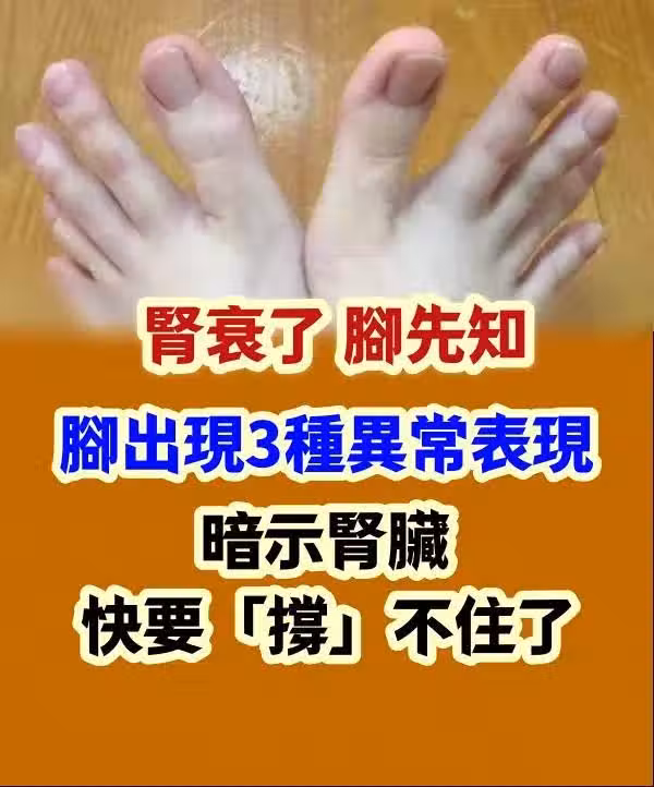腎衰了,腳先知!腳出現3種異常表現,表示腎臟快要「撐」不住了!