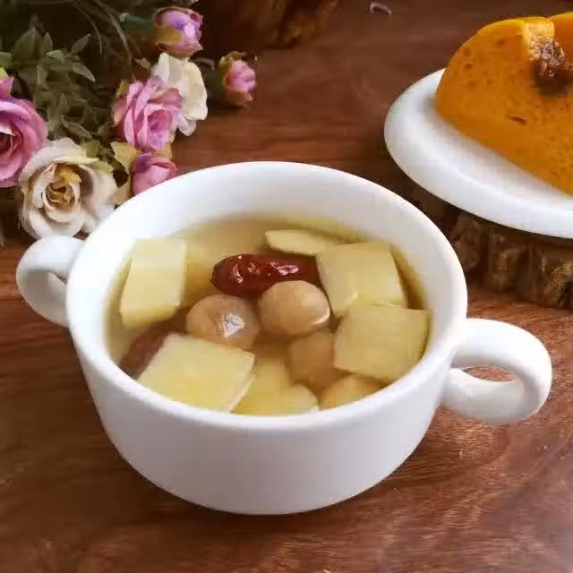 蘋果切小塊,桂圓去殼、紅棗一起放進養生壺中煮20分鐘。