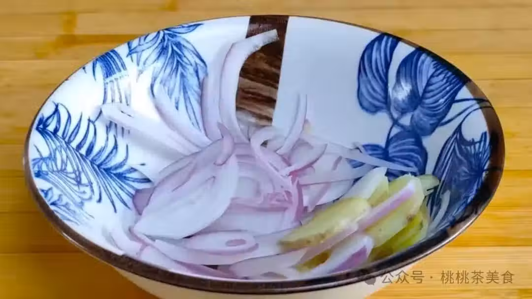 4.選擇肥瘦相間的五花肉,先切成薄片,再切成條,然後剁成肉末,把切好的洋蔥和薑片放在五花肉上一起剁,剁好之後放入豆角裡面。