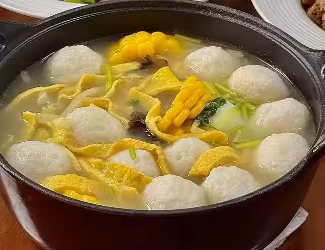 2、熱鍋倒油,蔥姜爆香;放一點菜或者菇翻炒一下,加入清水;水開,放入魚丸,木耳絲,蛋餅絲,加適量白鬍椒粉,鹽調味,出鍋撒香菜或蔥花即可。不泡木耳可以換成紫菜更快!快試試這道低脂低卡高蛋白三鮮魚丸湯,真的好吃!加自己喜歡吃的食材,零失敗!