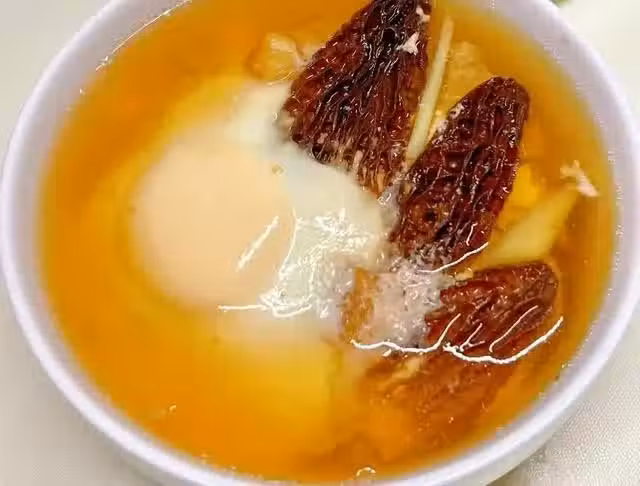 食材:羊肚菌、雞蛋、乾貝、山藥、薑絲、梅花肉