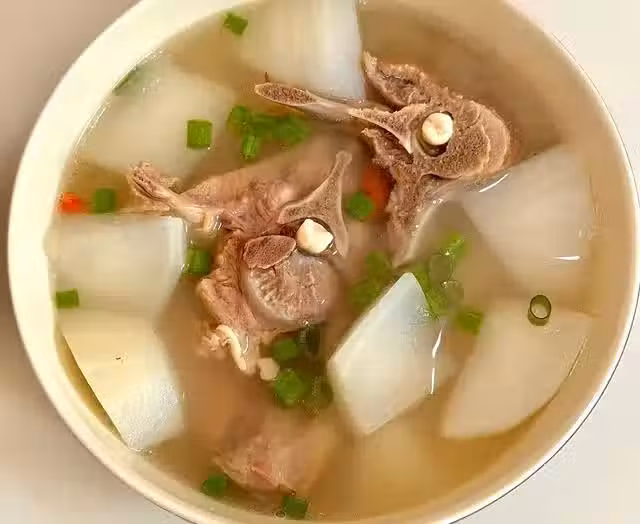 3、第二遍等水開後再放羊蠍子和調料,起鍋前20分鐘放蘿蔔枸杞,喝之前加鹽和胡椒粉。這款羊蠍子湯,低油低脂,喝起來沒負擔,一碗下肚,後背都微微冒汗,驅寒太合適了,趕緊去試試吧