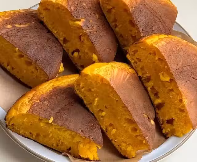 食材:南瓜泥200克、雞蛋一個、牛奶160克、糖35克、低筋麵粉180克、泡打粉10克