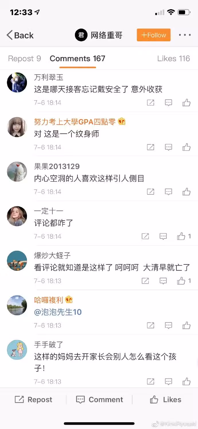 事後,也有眼尖的網友認出,該名女子是馬來西亞的網紅紋身師「Kinki Ryusaki」,和同樣身為紋身師的丈夫開了屬於自己的工作室,2016年夫妻倆曾出席「香港紋身展」,近年來在上海開店,吸引多人朝聖。此外,也有知情人士透露,「Kinki Ryusaki」與丈夫的感情十分甜蜜、都很疼愛女兒,「那些靠胡亂猜測的惡意攻擊毫無道理,只會突顯自己的愚昧無知,紋身師有紋身不是很正常嗎?」