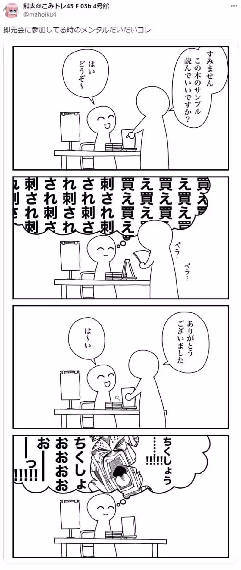 日本繪師「熊太」最近藉由漫畫,描寫了自己前往Comic Market(C105)同人展擺攤的心境……