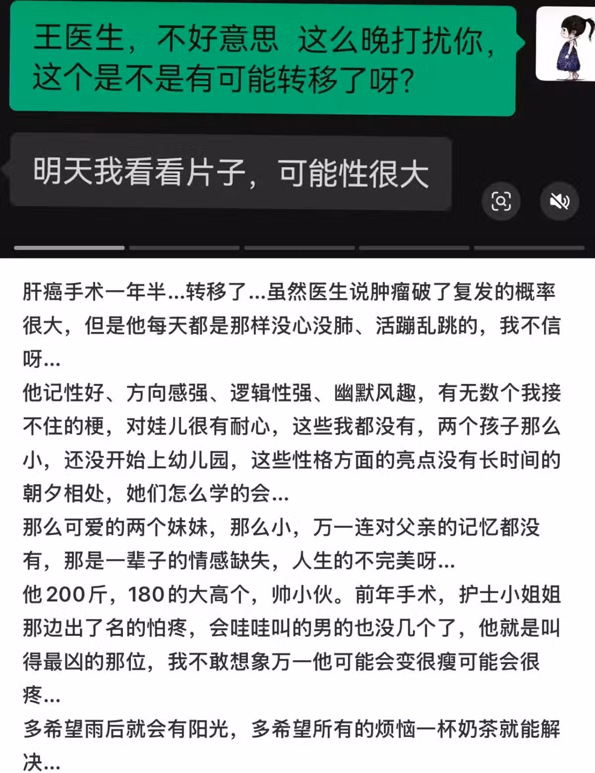 原來早在兩年前,2022年9月份,何老師已查出肝癌,然後進行了手術,開始做灌腸,每次需要兩三萬。