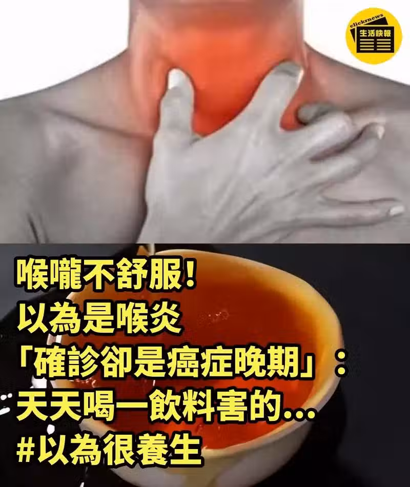 喉嚨不舒服❗以為是喉炎「確診卻是癌症晚期」:天天喝一飲料害的...#以為很養生