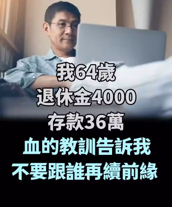 我64歲,退休金4000存款36萬,血的教訓告訴我,不要跟誰再續前緣